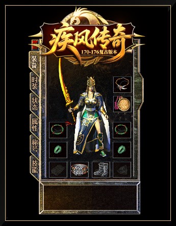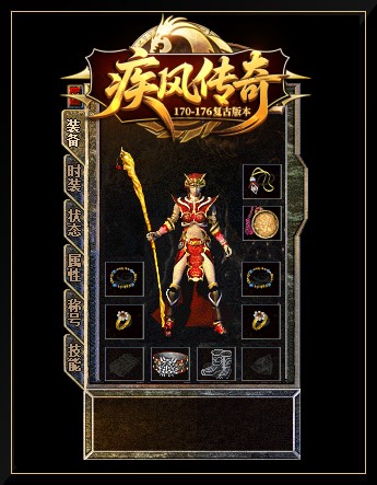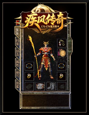 装备等级:沃玛-祖玛-赤月!武器最高裁决之杖,所有装备全爆,无合成